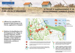 - affichage en mairie de panneaux réalisés par le bureau d’études chargé de la révision du PLU, faisant apparaitre les éléments du diagnostic, les orientations et les plans schématiques relatifs au contenu du PLU et notamment du Projet d’Aménagement et de Développement Durable;